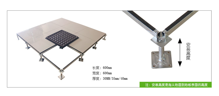 全鋼防靜電地板為全鋼組件,分有邊、無邊、微邊(三種邊處理方式)。底面采用SPCC深沖冷軋板拉伸成型鋼板厚度(0.4~1.5mm),球窩狀結(jié)構(gòu),增加地板的機(jī)械荷載強(qiáng)度。面板采用硬質(zhì)SPCC鋼板(0.5~2.0mm),上下經(jīng)過點(diǎn)焊焊接成型,切邊沖孔后,經(jīng)防銹處理,環(huán)氧樹脂粉末靜電噴涂后,中間填充發(fā)泡水泥(可以根據(jù)客戶需求發(fā)泡不同重量),再經(jīng)過日曬養(yǎng)護(hù)后形成穩(wěn)定的承載結(jié)構(gòu)。地板上表層粘貼防火板(HPL)/復(fù)合PVC/ 通體PVC/陶瓷地磚等不同材質(zhì)的裝飾表層,達(dá)到產(chǎn)品花色的多樣性、可以根據(jù)客戶需求個性化定制產(chǎn)品。搭配聯(lián)網(wǎng)支架、支架、螺釘組裝后,定位聯(lián)接更加準(zhǔn)確、精度可靠。
