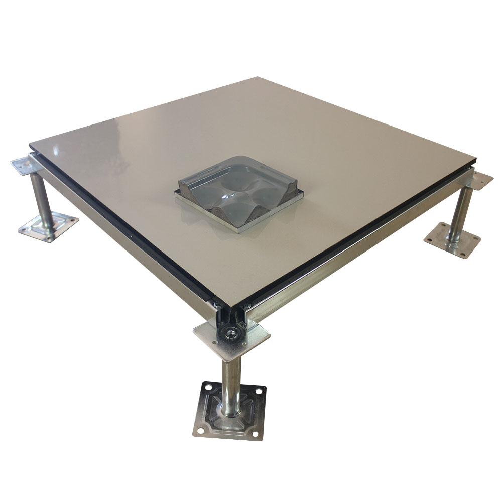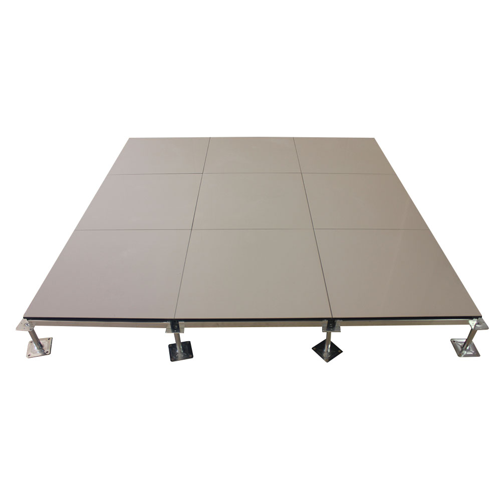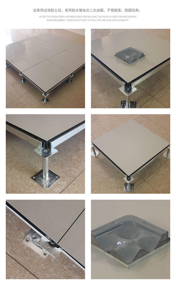 全鋼陶瓷防靜電地板采用上海寶鋼合金冷軋鋼板,經(jīng)拉伸后點焊成形。在瓷質(zhì)面層的生產(chǎn)過程中,均勻注入防靜電添加劑,由于面層的耐磨性,防靜電性能可以保持20年以上。而且系統(tǒng)電阻穩(wěn)定、經(jīng)信息產(chǎn)業(yè)部防靜電協(xié)會檢測,各項性能均達到要求。全鋼陶瓷防靜電地板系統(tǒng)有地板、橫梁、支座組成。橫梁和自身高度可調(diào)的支座用螺釘連結(jié)成穩(wěn)固的下部支承系統(tǒng),地板鑲嵌入橫梁圍成的方格內(nèi)。