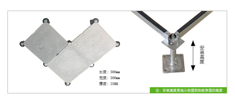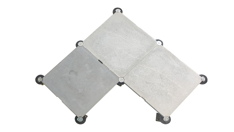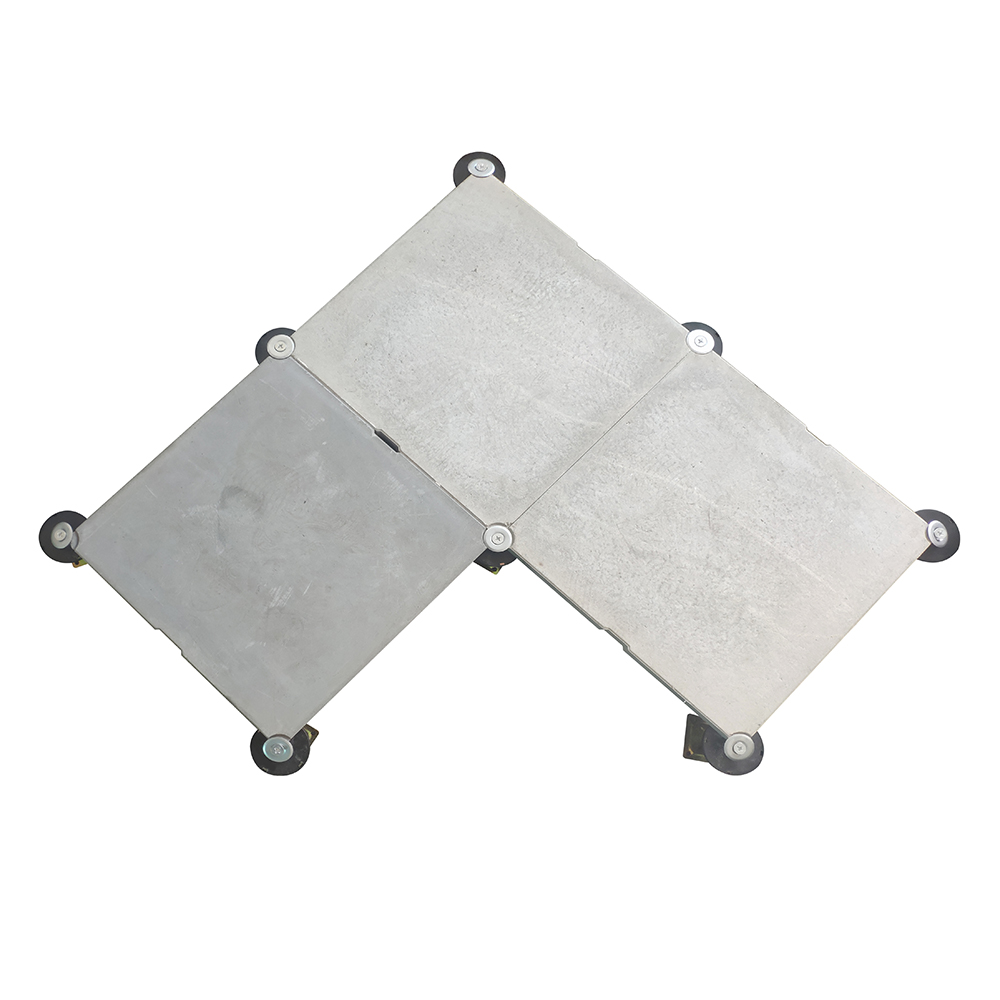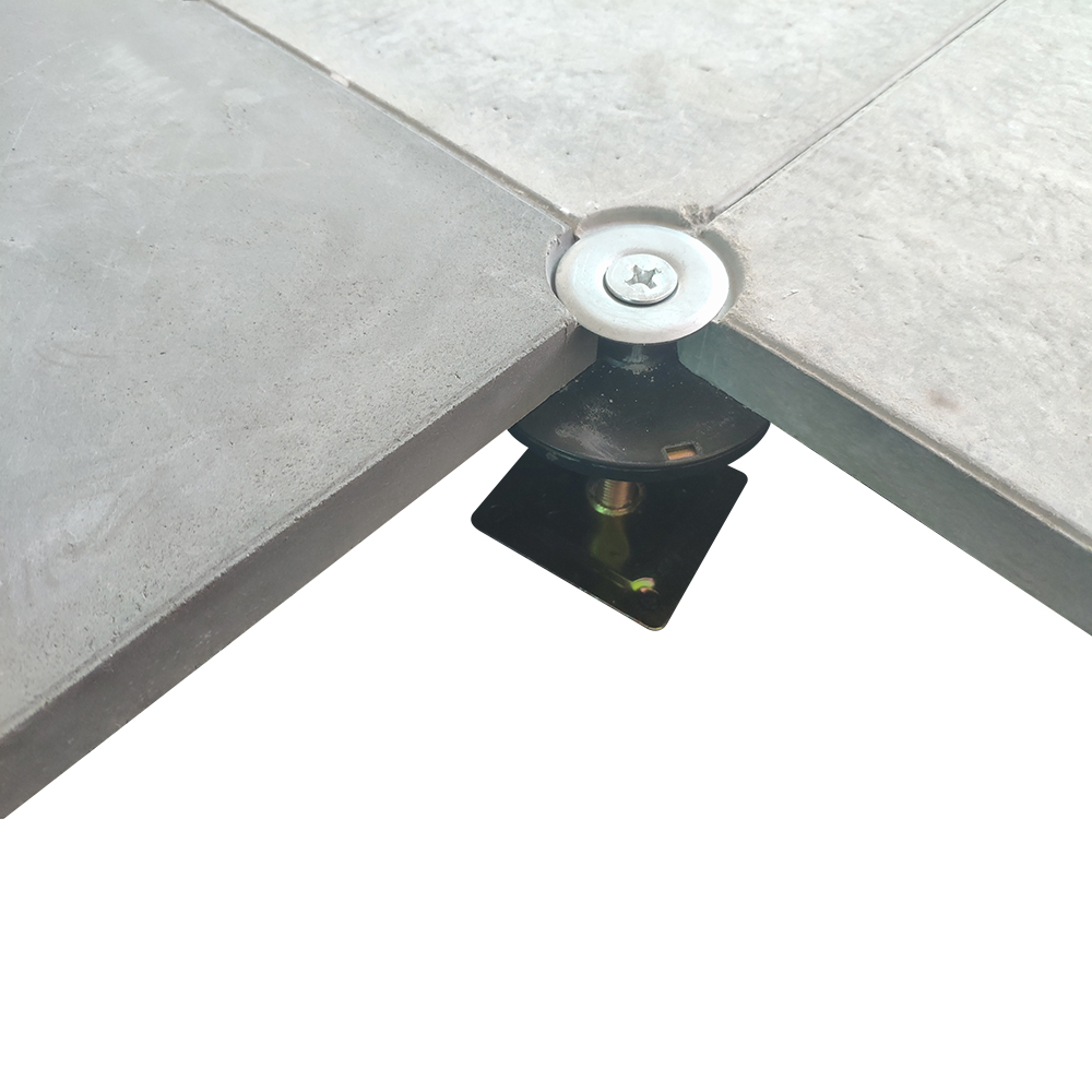 GRC水泥地板是由硅酸鹽、無機(jī)纖維、礦物纖維、石英砂等材料經(jīng)過高壓一次成型的環(huán)保地板,每塊地板自帶穿線孔。地板四角鍍鋅底座支承,不帶橫梁系統(tǒng)。每塊地板四角有90度圓弧,四塊板組合而成后形成一個圓,有一個鐵制螺母壓角固定。鋁頭上配有圓形緩沖定位橡膠墊,防止地板受力后顫動引起的響聲。支架高度可調(diào)5cm。