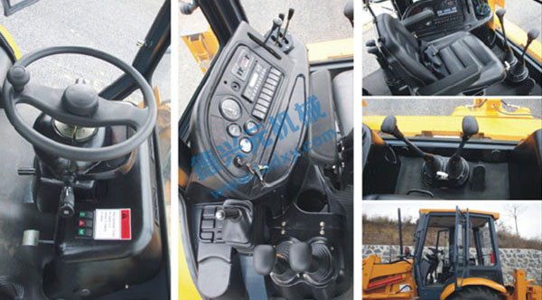 合理布置的操作手柄和儀表,工作狀態(tài)一目了然,將操作手疲勞強度降低;角度可調式方向機,配合可調式豪華座椅,適合不同體形的司機操作。